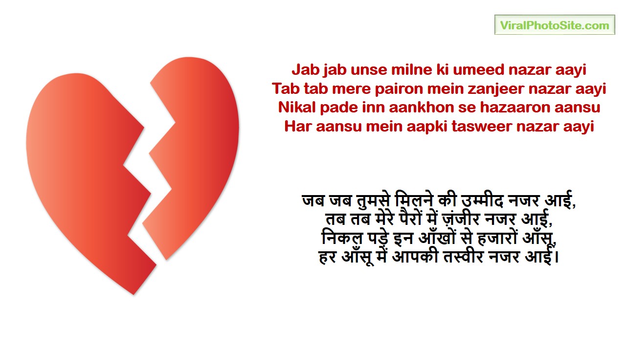 Shayari that you can feel . You can make these shayari as whatsapp dp profile pic or share with your friends. The sad love shayari in hindi will help you to reduce your stress caused by a break up . It will also motivate you to move forward in life and do something bigger.